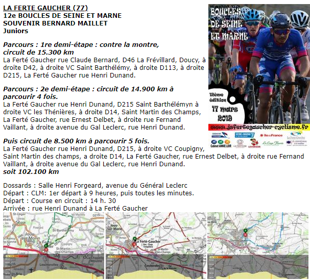 Les coureurs sont convoqués à 7 h. 30 – avenue du Général Leclerc à la Ferté Gaucher.