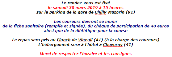 Une participation de 40 euros par coureur pour frais d’hébergement et de repas est demandée.