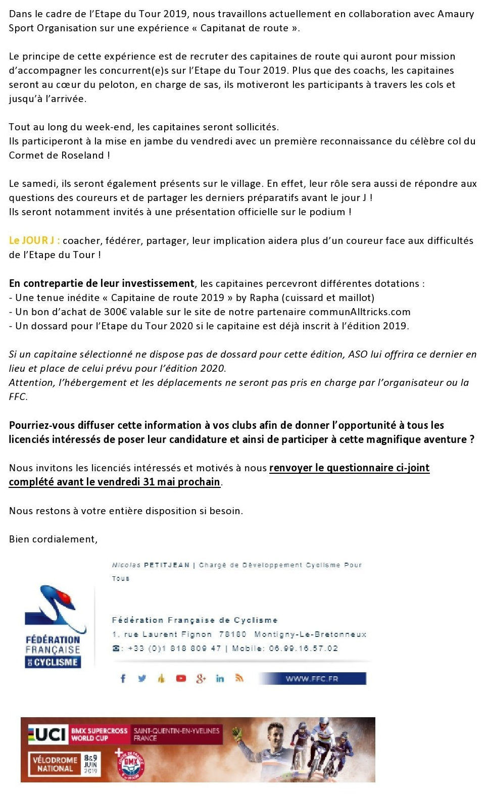 Recrutement capitaines de route par secretariatcdc91 Publié le 17 Mai 201918 Mai 2019 Partager : Cliquez pour partager sur Facebook(ouvre dans une nouvelle fenêtre) Facebook Cliquer pour imprimer(ouvre dans une nouvelle fenêtre) Imprimer J’aime chargement… Similaire