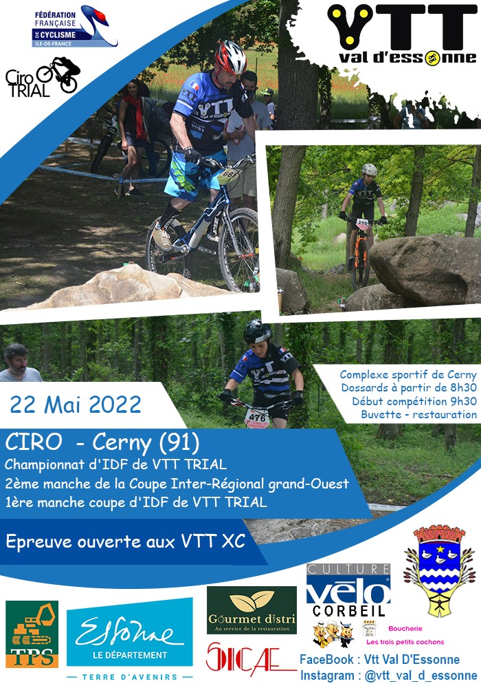 Dossards : sur le terrain de trial derrière le gymnase de Cerny (91590) à partir de 8 h. 30