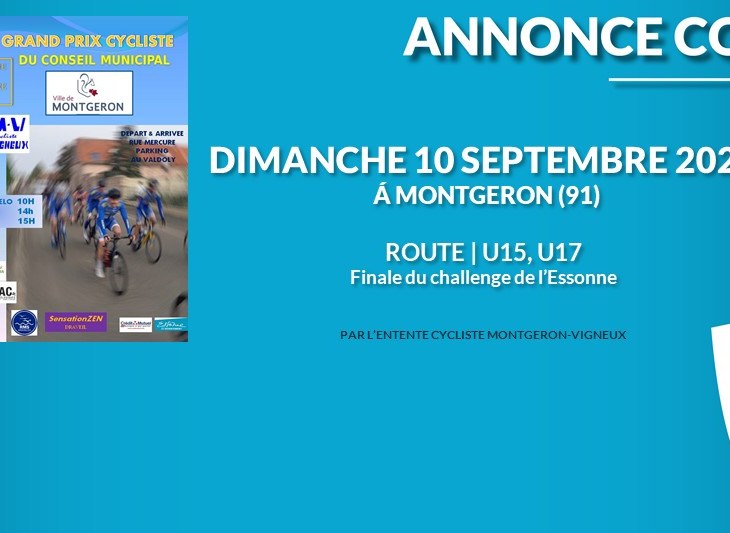 ROUTE – PRIX DU CONSEIL MUNICIPAL DE MONTGERON Finale du challenge de l’Essonne CIRCUIT FERME A…