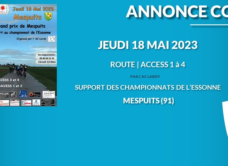 Grand prix de MespuitsSupport des championnats de l’EssonneAccess 1 à 4 Circuit de 11,5 kmParcours…