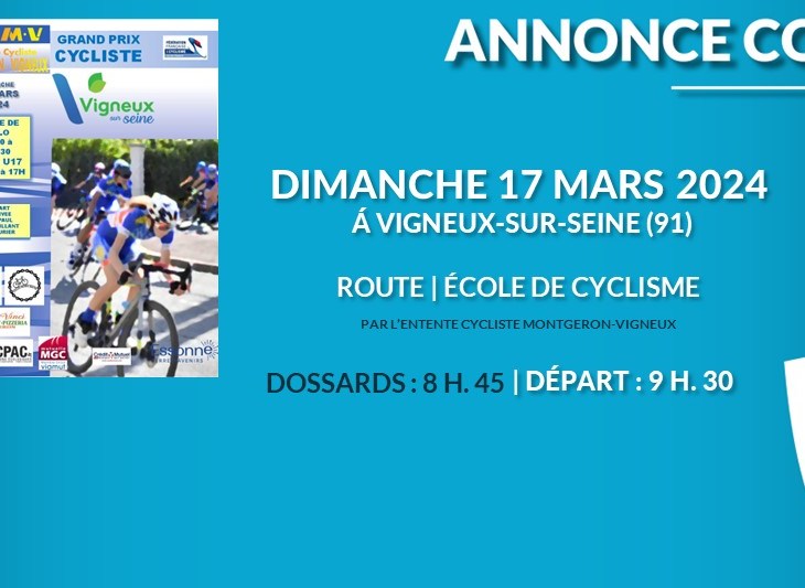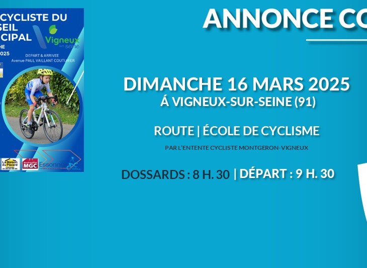 Catégories : U7, U9, U11, U13 Discipline : VITESSE – JEUX (uniquement pour les essonniens)Dossards : 09:00 Rue du…
