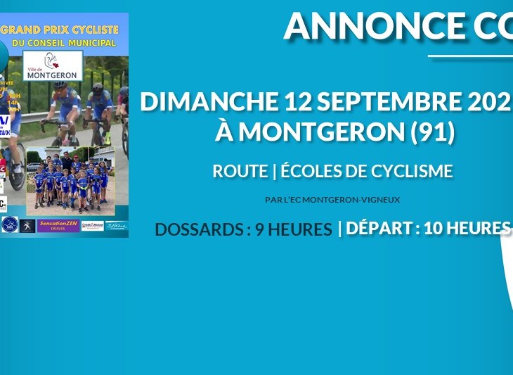 MORSANG-SUR-ORGE (91)CYCLO-CROSS – support des aiglons 91Catégories : Prélicenciés, Poussins, Pupilles, Benjamins Dossards : 13 h. 30 – parc…