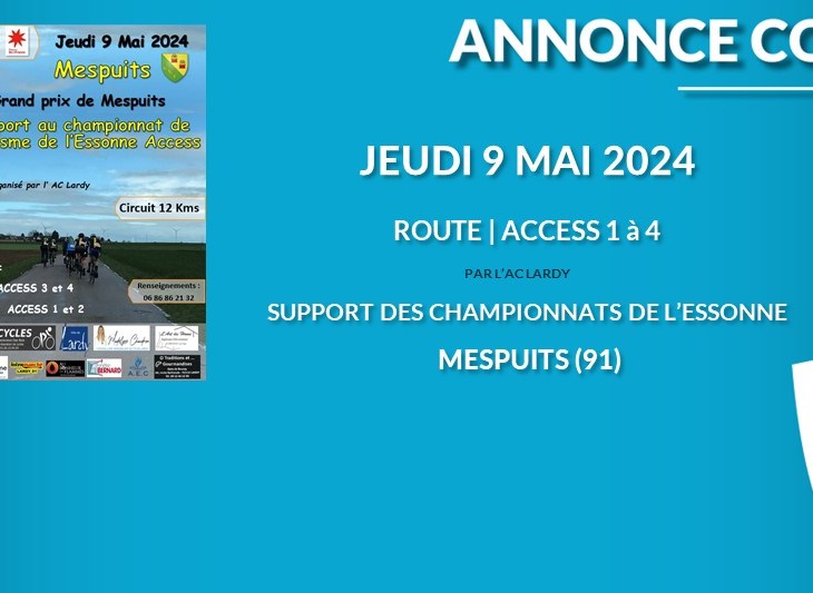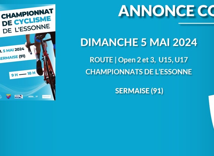 ROUTEChampionnat de l’Essonne MasculinCatégories : U15, U17, U19, Open 23 -Catégories : Open 23Parcours : Circuit…