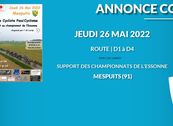 Support des Championnats de l’EssonneCatégories : D1 à D4 Parcours : Mespuits D63, à droite à 4…